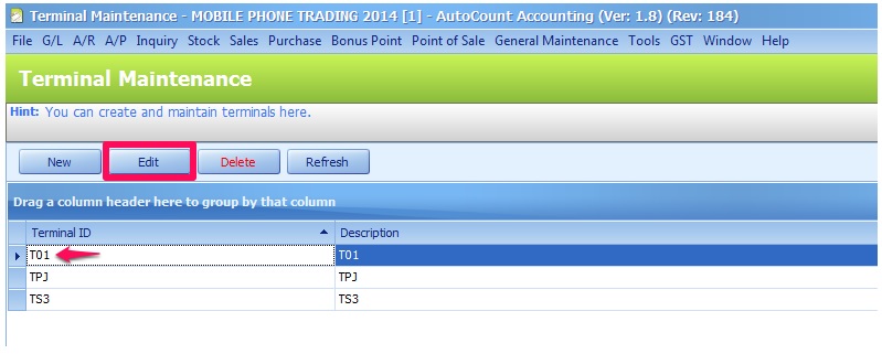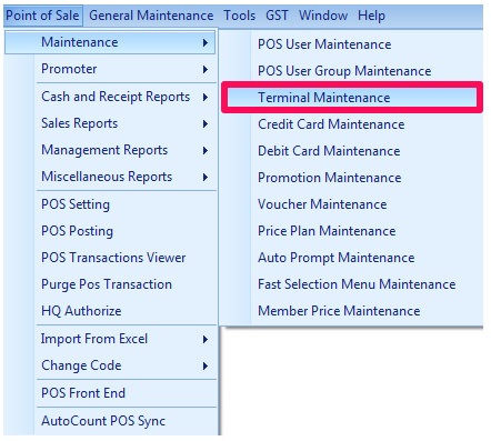Step 1: Go to Point of Sale > Terminal Maintenance.