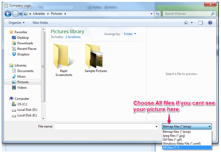 Note: If you cant find your image appear in the location, choose All files from the bottom right of the screen.