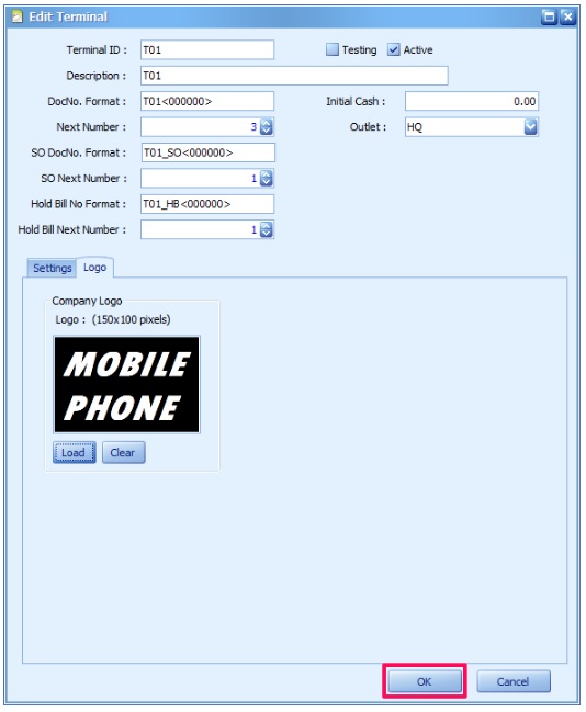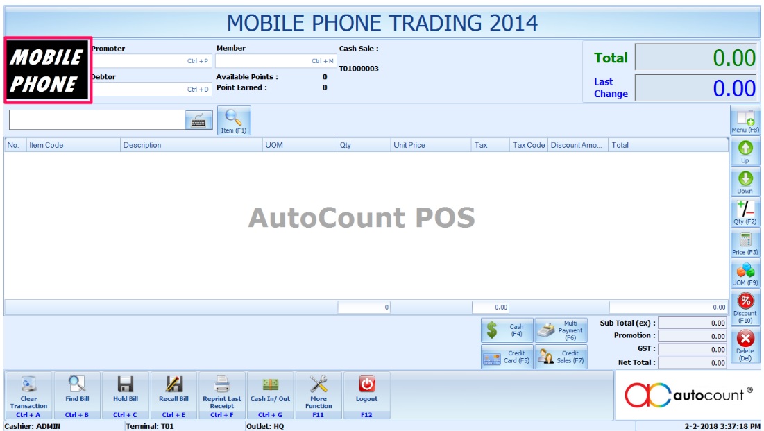 Now, login to your POS system again and the AutoCount logo will change to your own company logo.