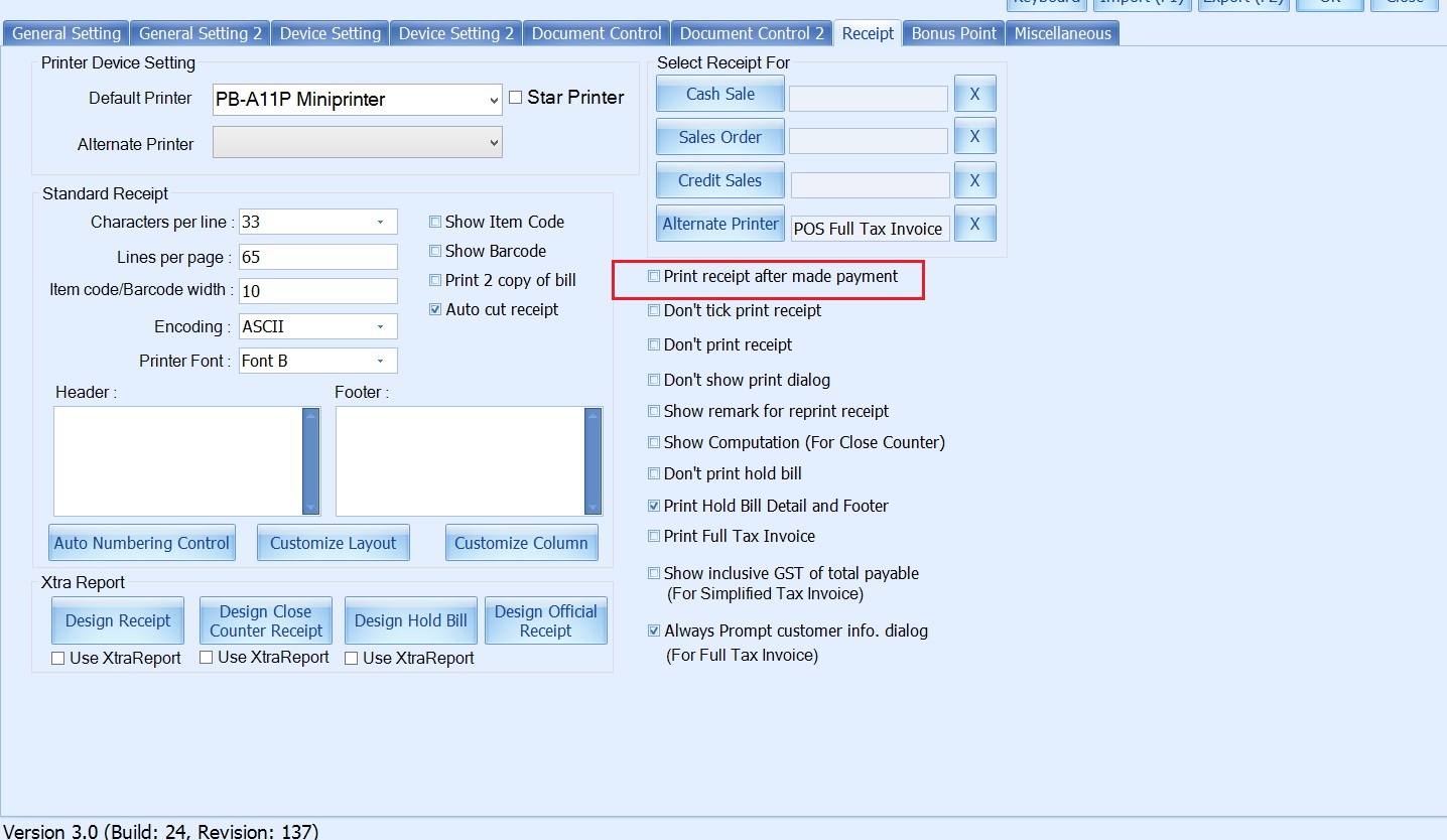 Tick Print receipt after made payment.